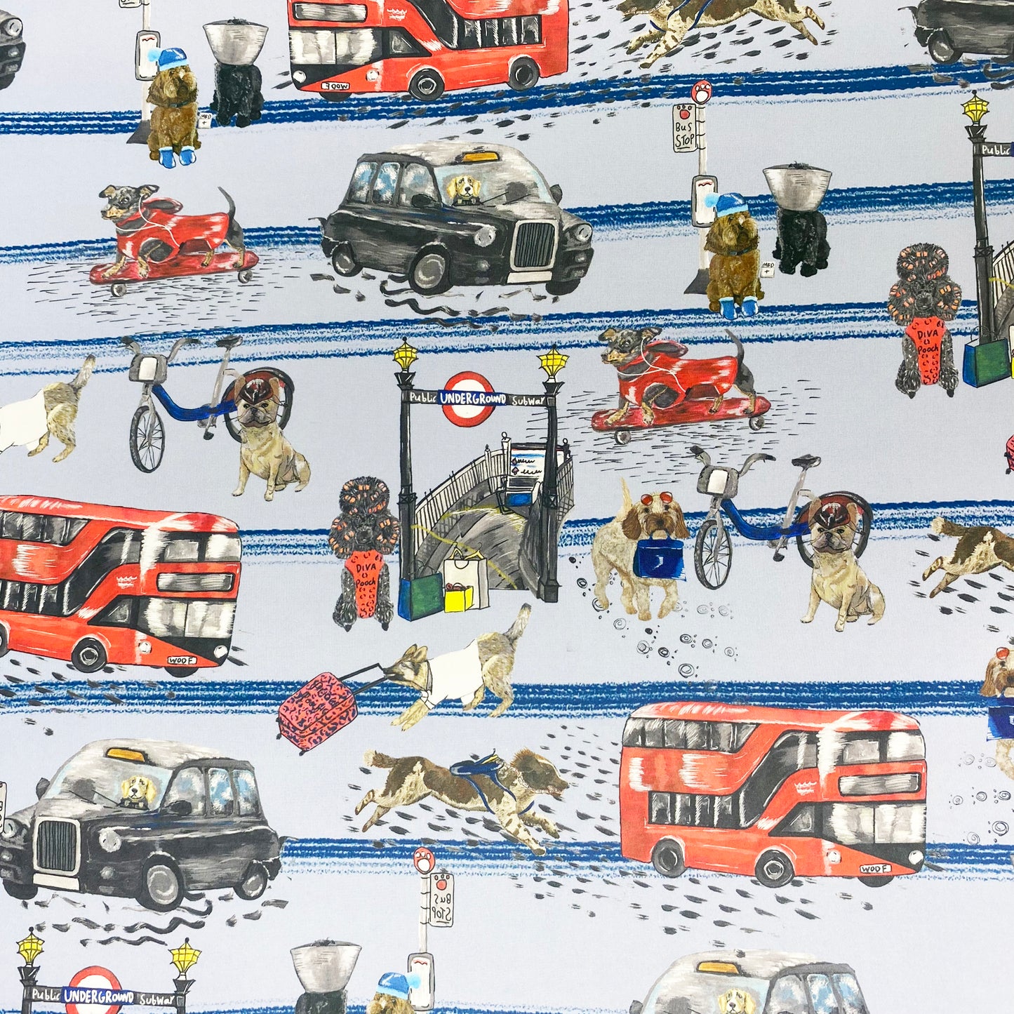 Depicting stylish dogs & London Buses