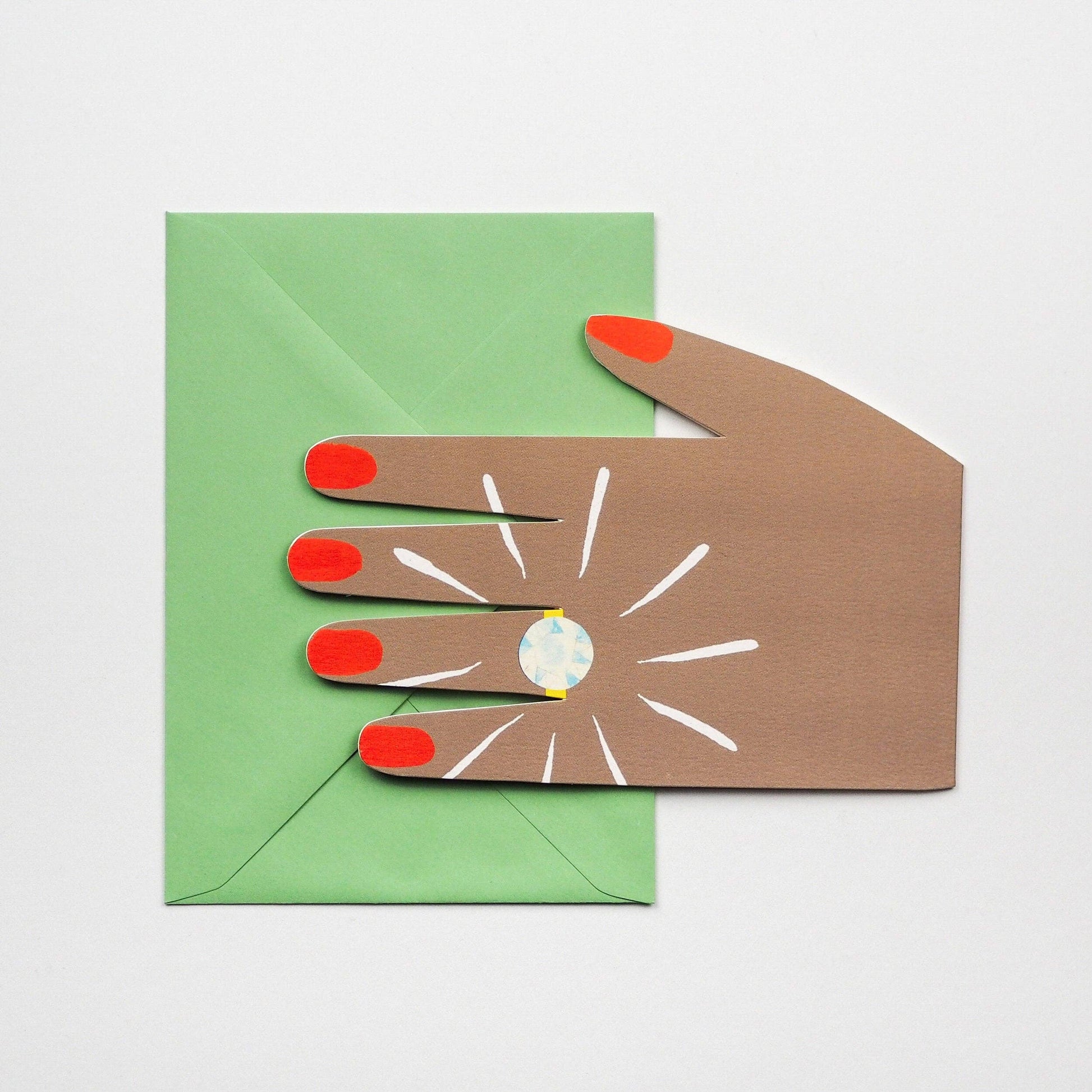 COR BLIMEY! What a whopping diamond ring! And spangly red nails to match. Make your congrats card the most snazzy one on the happy couple's mantelpiece.