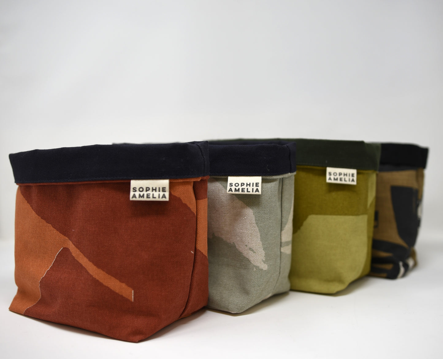 Hand screen printed fabric basket, perfect for adding a splash of design to your home.