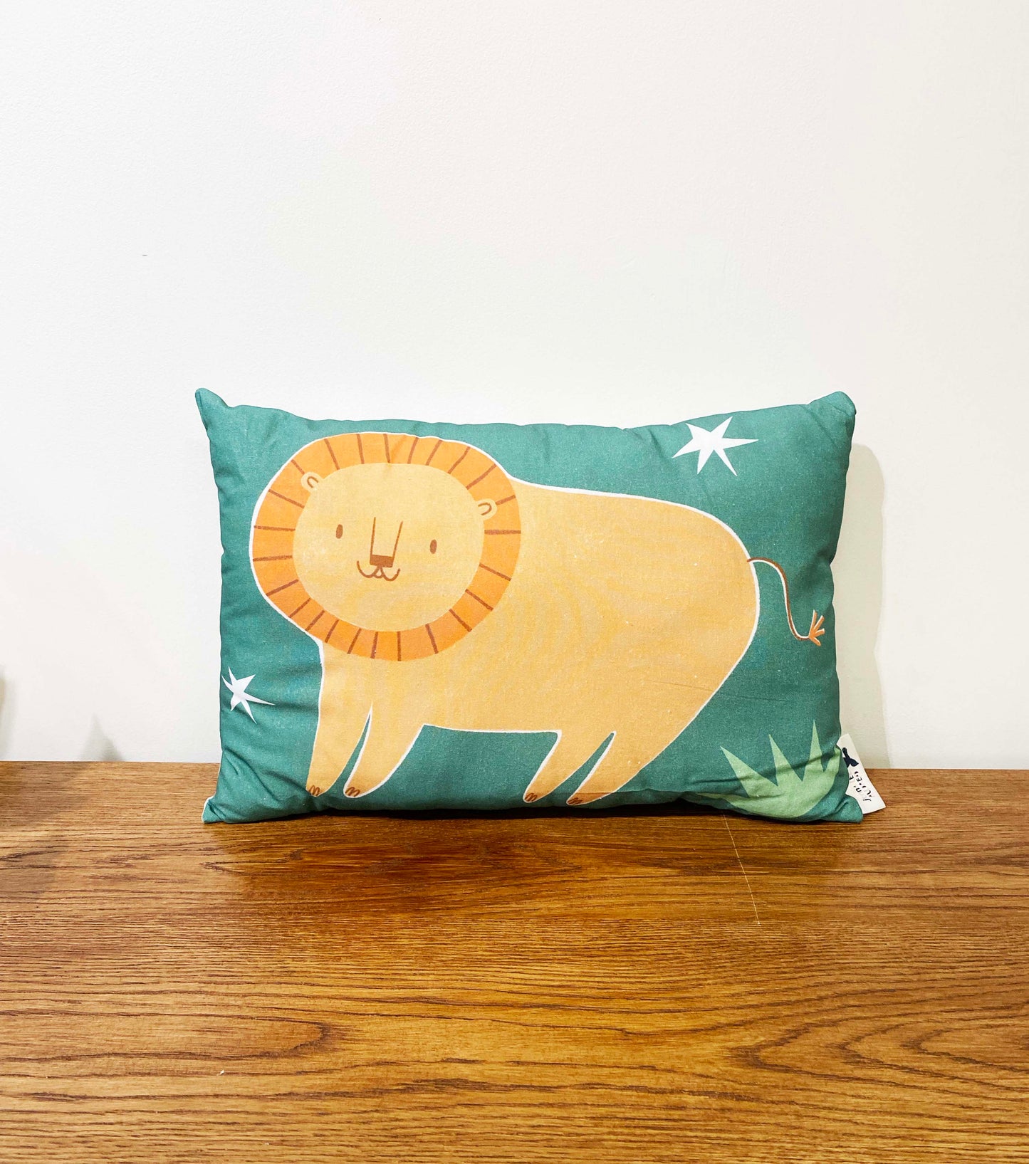 Illustrated Lion Character fusion, made into neat sized (33cm x 50cm approx) decorative cushions. Backed with a pale blue/green cotton gingham. Each pillow will be slightly different due to the handmade nature.