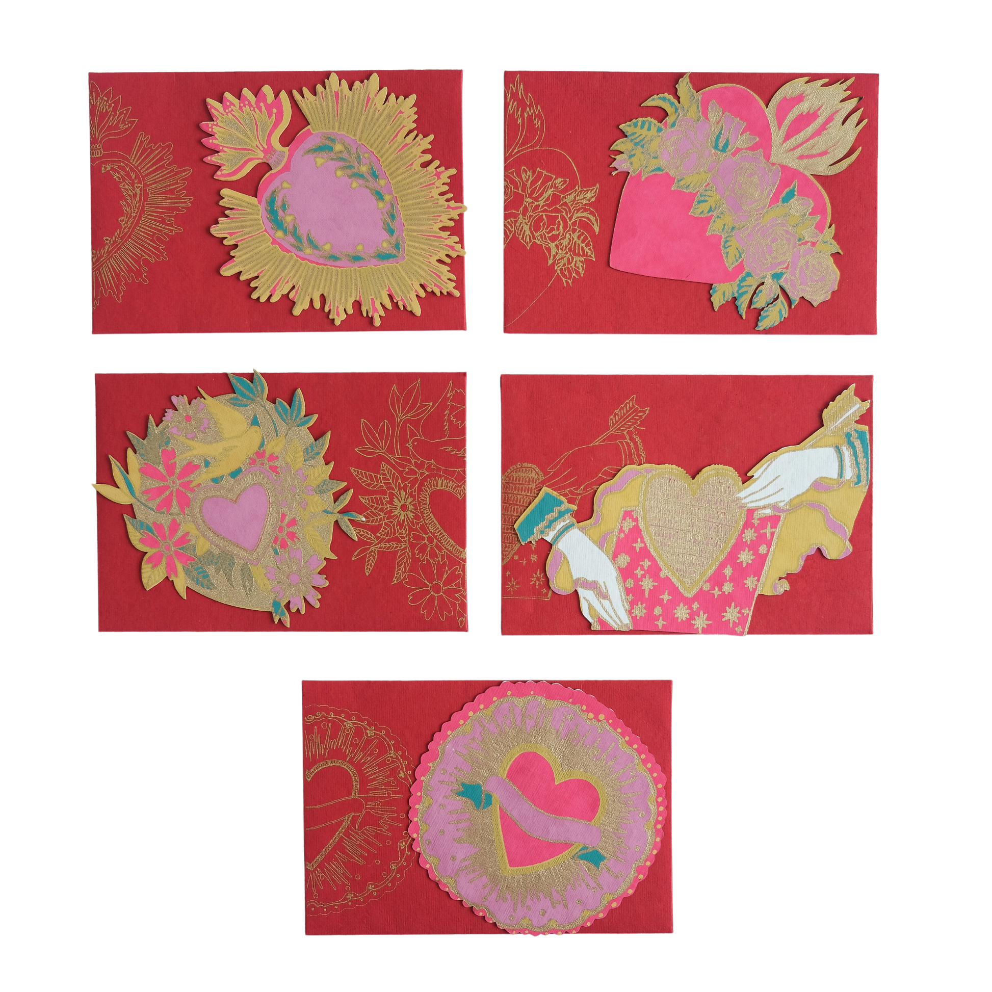 Five gold embellished heart notelets, perfect for spreading the love!