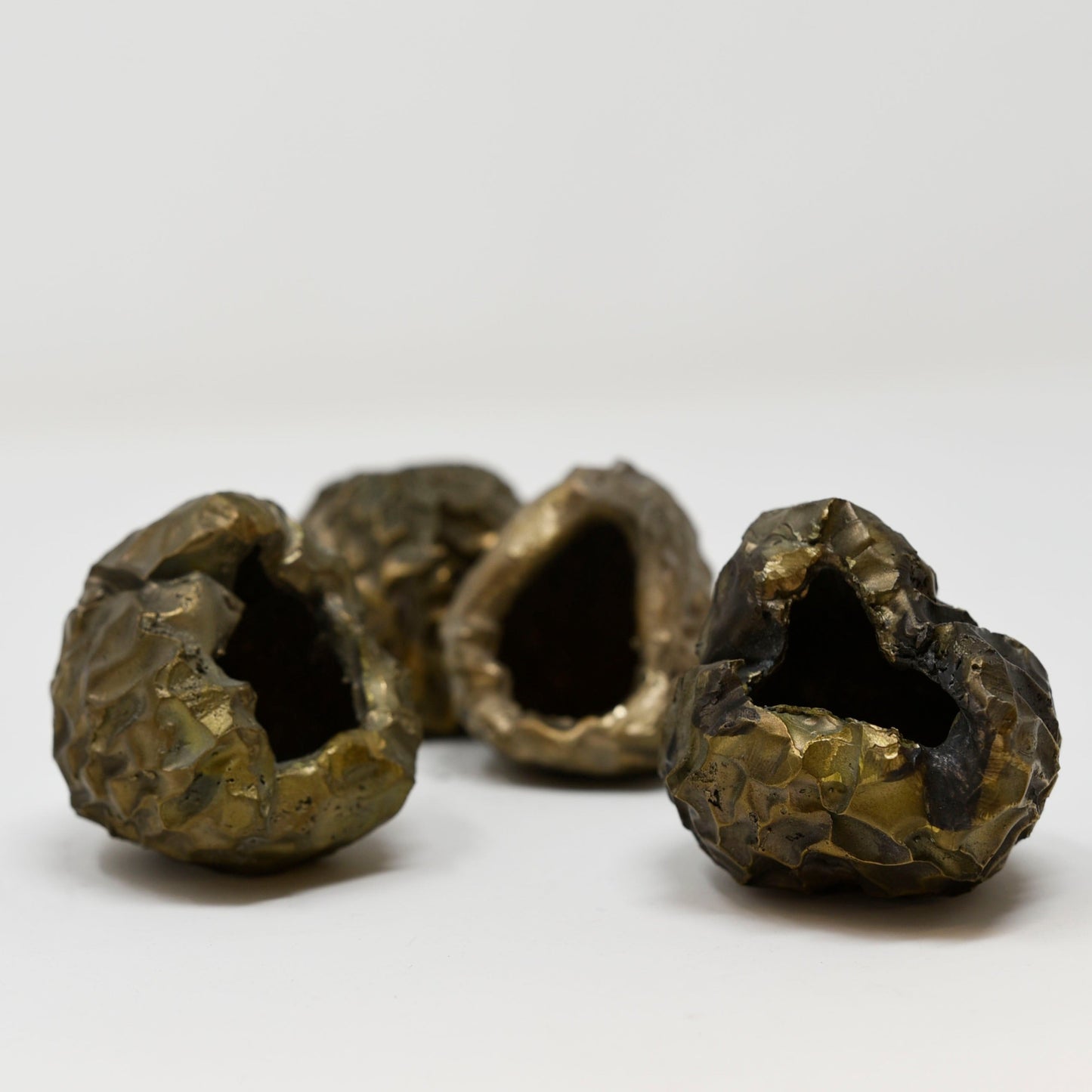 This series of bronze sculptures of discarded pieces of fruit, including passion fruit and bananas, as well as cotton seed pods, shares a sense of them being taken from their original context by colonial botanists and drawn up as ‘discoveries’ to European audiences.