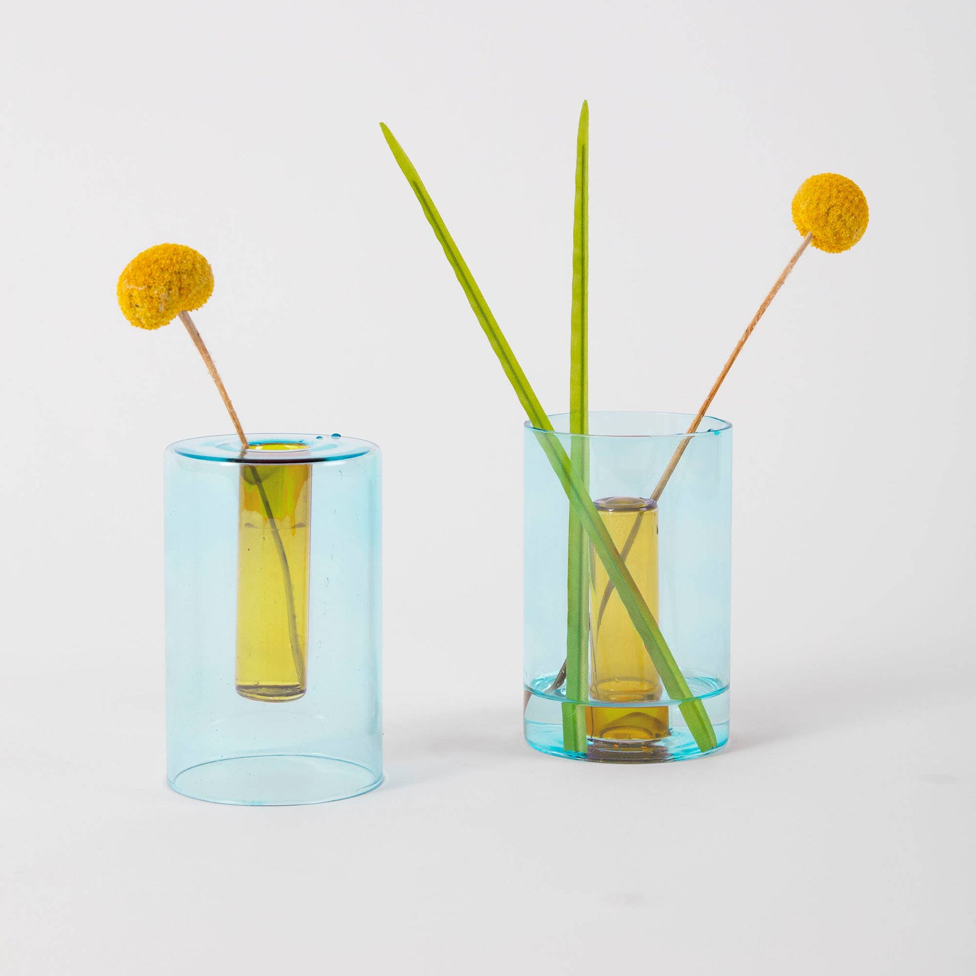 Two coloured glass vases in one, they’re designed to let your creativity flourish and make you fall in love with flowers again.