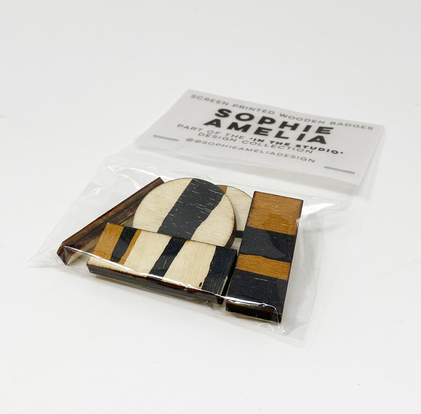 Brown Screen Printed Plywood Badges by Sophie Amelia Design