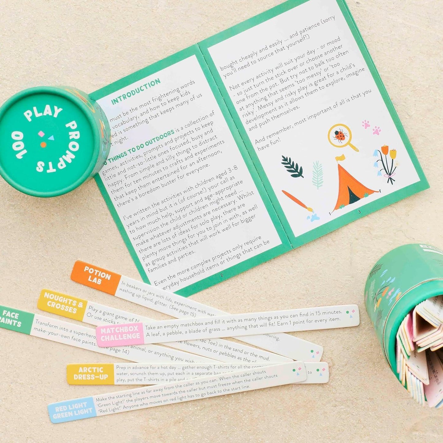 100 Things to Do Outdoors is a collection of games, activities, prompts and projects to keep little and not-so-little ones focused, busy and happy. Pick a play prompt strip to give you all the inspiration you need whether you're a parent, a grandparent, a childcare worker or simply the one in charge of a child for a day. From simple and silly things to distract them for ten minutes to crafts and experiments to keep them entertained for an afternoon, there's a boredom buster for everyone. If you don't know how to make moon sand, chalk paints or giant bubbles, no problem. There's a handy booklet with all the instructions you'll need for all sorts of projects.