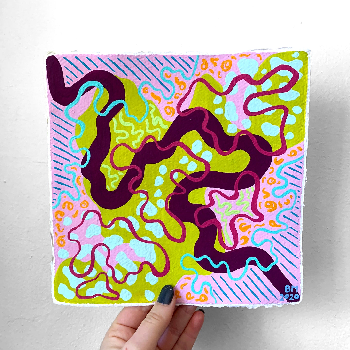 Original Abstract Painting on beautiful 320gsm Cotton Rag Paper. Painted using emulsion paint and varnished to protect the surface and enhance the colours.